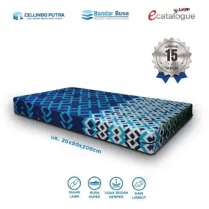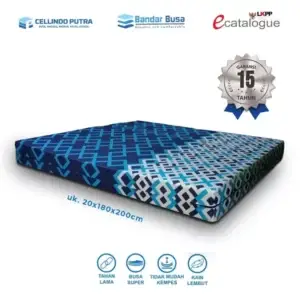 Salah satu jenis kasur busa yang kami sediakan ialah kasur busa super. Dengan harga kasur busa murah dan sesuai dengan kualitas, kasur busa super dari kami juga dilengkapi dengan garansi. Tak tanggung-tanggung, kami menawarkan kasur busa super merk BANDAR BUSA dengan garansi hingga 15 tahun lamanya. Perlu untuk anda sadari, semakin lama masa garansinya, maka hal tersebut menunjukkan bahwa kualitas kasur busanya semakin berkualitas. Dengan adanya garansi, dijamin anda tak akan merasa kecewa atau dirugikan setelah mendapatkan kasur busa dari kami.